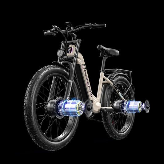 Damen E-Bike mit Vorderradfederung und Doppel-Motor